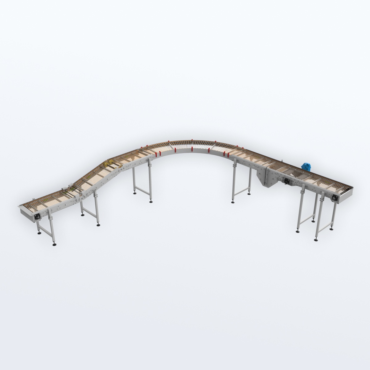 Основа магистральной линии на крупных птицефабриках. Модульная конструкция с регулируемой плоскостью (±25°) и поворотами (30°, 60°, 90°). Производительность — до 92 000 яиц/час (КЯ‑750), сбор с нескольких залов.